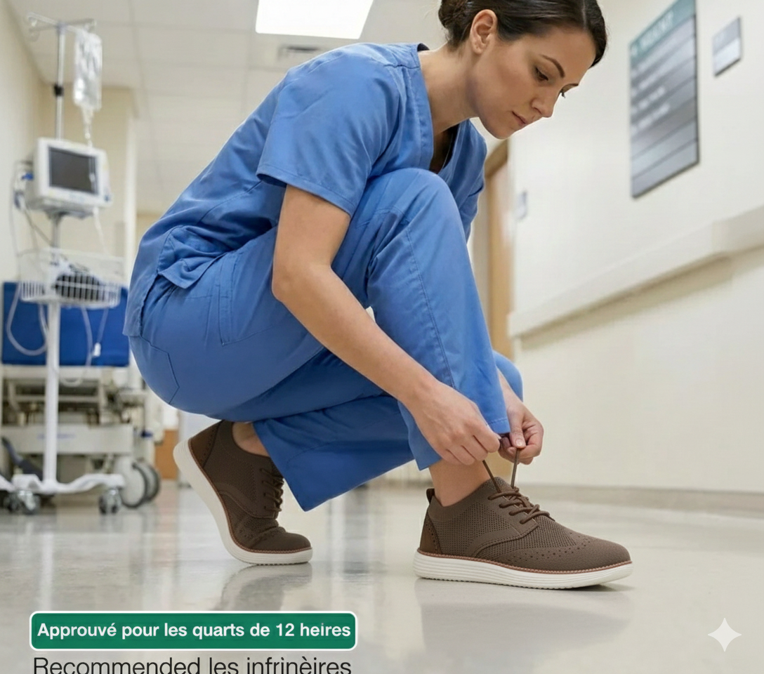 Découvrez un confort optimal grâce à nos chaussures spécialement conçues pour apporter soutien et soulagement, elles ciblent les douleurs aux chevilles, aux genoux et au bas du dos.